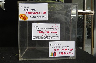 最後にセリ室入口前。受験生への応援花(おうえんか)で「落ちない花」マーガレット。