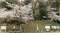 本殿に続く階段や灯篭にも桜の花が良く似合います。春に樺崎八幡宮へお越しの際はぜひ桜の花も楽しみください。