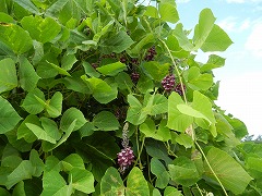 クズの花は葉に隠れていることも多く、香りに気づきにくいのですが、花に近づいてみると葡萄のような甘い香りがします。花の赤紫色なら、形も葡萄の房のようです。