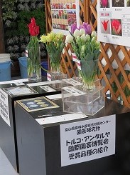 今日はチューリップをメインに、明日はチューリップ以外の展示品目花をご紹介させていただこうと思います。いずれも魅力いっぱいの春の花です。