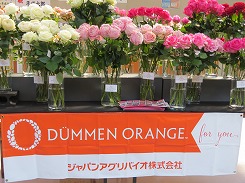 このデュメン・オレンジ社が今週、大田市場花き棟の中央通路でバラを中心とした種苗の展示をされています。