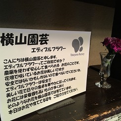 横山園芸さま(清瀬市)のエディブルフラワーを使った“おいしそうな作品”が展示されました。