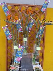 こちらは沖縄のストレリチア。3つの花瓶、それぞれに品種が違うんですよ。