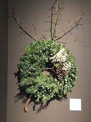 手間なくクリスマスの雰囲気を出すコツ、クリスマスから正月の雰囲気に簡単に変更する方法などを教授される小林様。実践では御客様が立ち上がって回りに集まり小林様の手先に注目。会場のみなさまの熱視線というか熱心線が注がれました。