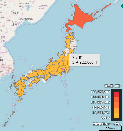 さらにはさらには、どの地域でクレジットカードを使ってどのくらい花を購入しているかまでわかってしまうのです。(2015年↓)