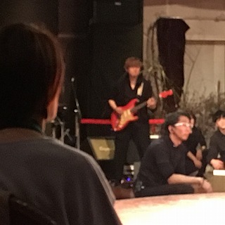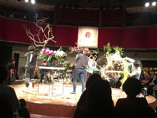 素晴らしいのは花いけばかりではありません。BGMはバンドの生演奏。(左手にドラマーさんがいらっしゃいます)