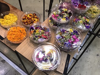 チョット離れたところにハクサンインターナショナル様のブースがあり、エディブルフラワーを展開されていました。