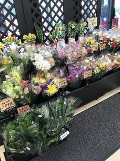 ちなみに、花の売り場はこんな感じ。唯一ガーベラ花束セットが空バケツになっていました。