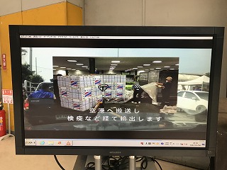 展示されているショーケース横には、タイの首都バンコクや生産圃場の様子が紹介された動画が流れています。