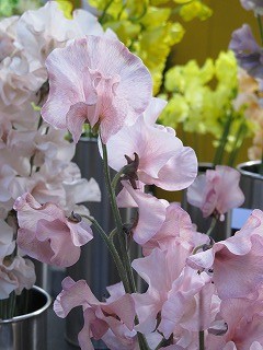 もうこうなるともはやスイートピーは生産販売アイテムとして、独自の新しいステージに突入したと言えるのではないでしょうか。生産者さんのアイデアと工夫から、こんなにきれいに、また多色に染まり、姿を変える花もなかなかないでしょうし、デザイナー魂をくすぐるすばらしい商品が提案されています。しかも消費トレンドをしっかりキャッチアップしているものもたくさんあります。