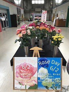 6月2日ローズの日にちなみ、先週と今週と2週続けて大田市場花き部の中央通路は育種家さんや種苗会社さんによる品種展示が行われました。