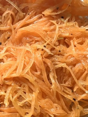 あまり使わないのかなあ、『ばかうま』。 馬鹿に美味い=とてもおいしい、という意味ですが、最近では『鬼』とか『激』とか『アツイ』とか、そういう形容詞を使うようになり、古めかしい感じになりましたかね・・・。しかーし、ウマ(=馬)が二回も登場する『馬鹿うま』は今年最も縁起のいいウマワードではないかと思います。そしてウマといえばニンジンという単純な連想ですが、この時期ニンジンがとても美味しい。その中で最もウマイ一皿(ワタシの独断んです)はニンジンのラぺです。レシピは三国清三の動画からどうぞ、こちらです。いやーおいしそうにつくりますよね、三国シェフは。この動画はコロナ渦にアップされました。出かけられないストレスフルな時こそ美味しい料理を手軽に、という提案だったようです。当時動画をみて、ワタシもラぺを作り始めていまだに結構はまっています。作り方がとても簡単なのです。ニンジンを切って味付けするだけ。それだけなのにとても幅広い世界観があります。味付けの塩・コショウ・レモン・はちみつの配分で爽やかな感じからお菓子風にもお酒のあて風にもなります。