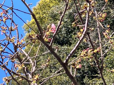 昨日の立春にはちょうど大田市場のカワヅザクラも(勝手に)開花発表となりました。おめでとうございます。