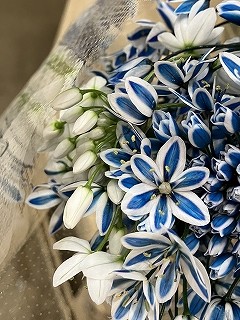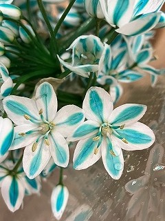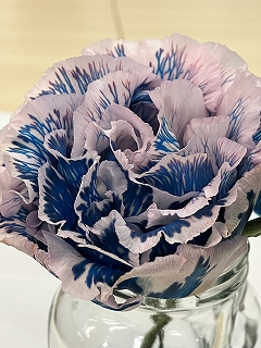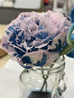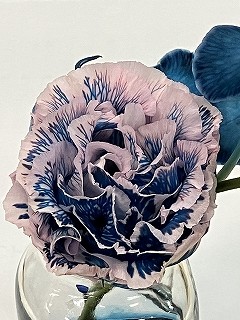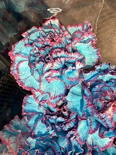 淡いピンク色のトルコギキョウにブルーの染液を吸わせました。