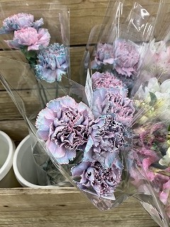 大田市場の近くのホームセンターで売っていた染めのカーネーション。