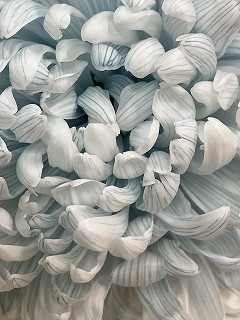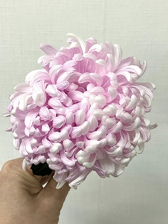 今回は、シロギクの神馬(ジンバ)という品種。少し咲かせて、一晩水を切って吸わせます。