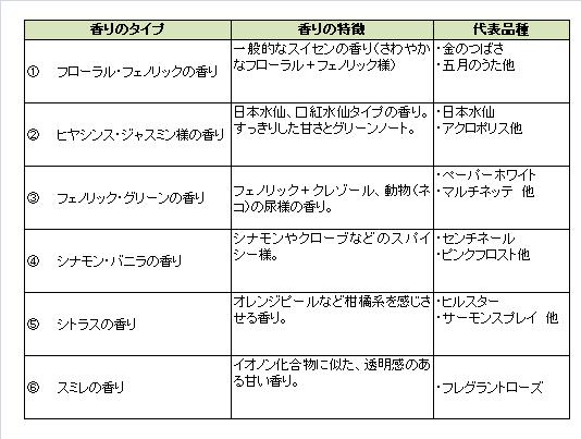 スイセンの香りのタイプ分類